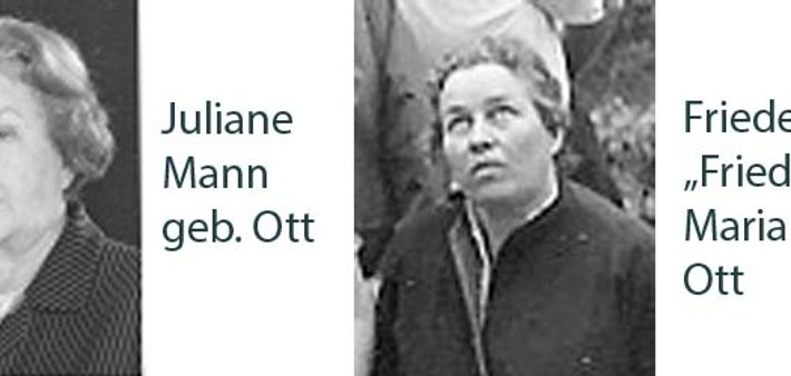 Juliane Mann geb. Ott verzog nach Berlin, wurde dort in Folge ihrer politischen Tätigkeit am 2.2.1938 verhaftet und wegen Vorbereitung zum Hochverrat angeklagt. Nach drei Monaten in Berlins Untersuchungsgefängnissen wurde das Verfahren eingestellt. Udo Grühn[1], kommunistischer Jugendführer und als Widerstandskämpfer zu zehn Jahren Zuchthaus verurteilt, bescheinigte Juliane Mann, dass sie „durch die Unterstützung meiner Tätigkeit zur Widerstandsbewegung gehörte und es lediglich ihrer Standhaftigkeit zu verdanken war, daß sie aus der U-Haft wieder entlassen werden konnte“. Sie stand von da an unter Beobachtung. Im Frühjahr 1939 wurden Hausdurch-suchungen gemacht. Ihr Mann war in dieser Zeit an einer Lungenfistel gestorben. So löste sie Ende April 1939 die Berliner Wohnung auf, war fünf Wochen in Jugoslawien und ließ sich im Juni 1939 in Frankfurt am Main nieder. Später zog sie nach Gustavsburg zurück. Dort arbeitete sie nach dem Krieg in der Gemeindeverwaltung.