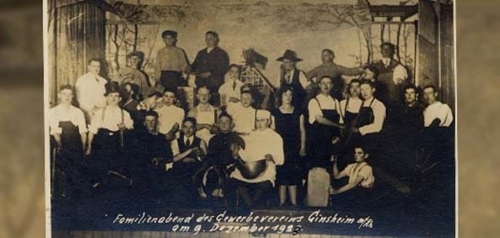 Vierzig Händler und Gewerbetreibende aus Ginsheim, Gustavsburg und Bischofsheim treffen sich am 29. September 1895 im Gustavsburger Gasthaus Zimmermann gegenüber dem Bahnhof und schließen sich zu einem Gewerbeverein zusammen. Schon sechzehn weitere Mitglieder sind bei der Festlegung der Satzung im Gasthaus Schnecko in der Mainzer Straße in Ginsheim anwesend. Angewachsen auf 71 Mitglieder wählen diese im Bischofsheimer Gasthaus Wiesenecker am 1. Dezember 1895 den Ingenieur F. Knöll zum Vorsitzenden. In den Vorstand werden unter anderem die Bürgermeister Wiesenecker (Bischofsheim) und Rauch (Ginsheim), Bahnmeister Wilhelm Wolf, die Direktoren Fischer, Bilfinger, Gastwirt Bayer und Werkmeister Hünerkopf bestimmt.