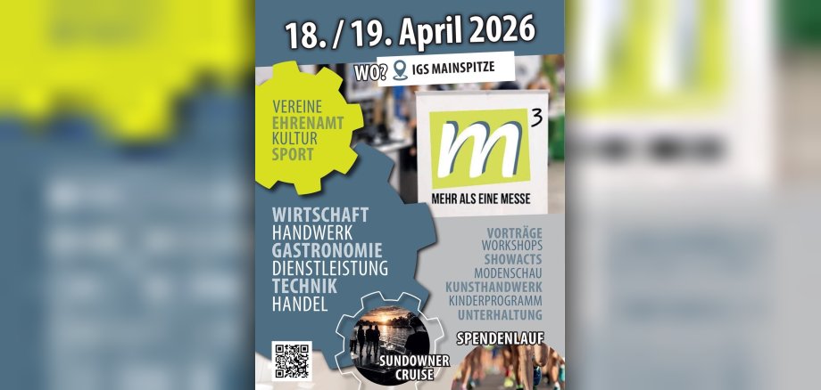 Am 18. und 19. April 2026 verwandelt sich das Gelände der IGS Mainspitze in einen lebendigen Treffpunkt für die gesamte Region: Mit der neuen Veranstaltung „m³ – mehr als eine Messe“ entsteht erstmals ein Format, das Wirtschaft, Handwerk, Gastronomie, Vereine, Ehrenamt sowie Kultur und Sport miteinander verbindet – und damit die Vielfalt und Stärke der Mainspitze eindrucksvoll erlebbar macht. Veranstaltet wird die Messe gemeinschaftlich vom Gewerbeverein Ginsheim-Gustavsburg, der Stadt Ginsheim-Gustavsburg, der Gemeinde Bischofsheim, dem Ortsgewerbeverein Bischofsheim sowie den Dachverbänden der Vereine.