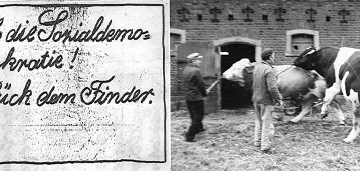 In den 50er Jahren kam es in der Gemeindevertretung wegen des Fasel-Ebers zu einer Kontroverse[2]. Damals waren zwei Eber eingegangen, ein dritter auf Kosten der Gemeindekasse angeschafft worden. Ein Gemeindevertreter: „Ich habe gehört, der neue Eber wäre auch schon wieder krank, kann man den nicht versichern?“ Die belehrende Antwort:“ Der neue Eber ist nicht krank, der ist sogar willig - nur etwas träge!“