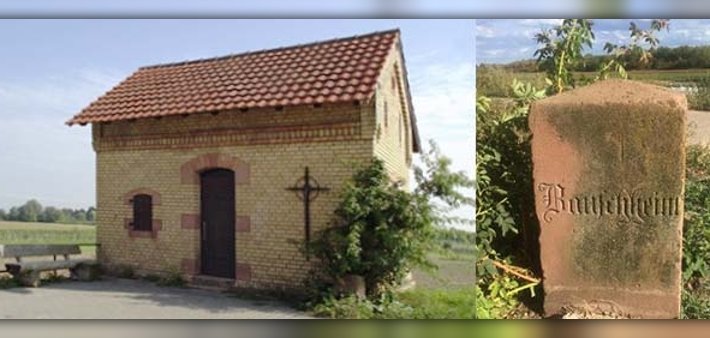 Das unter Denkmalschutz stehende Häuschen aus gelbem Klinker mit aus Sandstein gefertigtem Fenstergewand und Satteldach außerhalb von Ginsheim am Schwarzbach dient früher als Unterstand und Behausung für Werkzeuge, Lampen, Sandsäcke und Karren für die Rotten, jene Bürger, die von der jeweiligen Gemeinde zur Sicherung der Deiche als Dammwachen eingesetzt sind. Bezeugt wird dieses lokalhistorische Kuriosum durch den dort befindlichen Sandstein1 mit der Beschriftung „Rotten Stein“, „Bauschheim“ (N) und „Astheim I“ (S) auf Astheimer Gemarkung an der Grenze nach Bauschheim und nur wenige Schritte von der Ginsheimer Gemarkung entfernt.