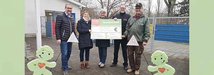 Kita freut sich über 500-Euro-ScheckPassend zum Herbst und Halloween verwandelten die Kinder der Kita "Mainpiraten" vor einigen Wochen rund 100 Hokkaido-Kürbisse mit Farbe, Glitzer und viel Fantasie in kleine Kunstwerke. Unterstützt wurde die Aktion vom Familienbetrieb Guthmann Söhne und dem REWE-Markt Christian Märker, die die Kürbisse kostenlos zur Verfügung stellten. Die Kürbisse wurden anschließend im REWE-Markt verkauft. Dank einer großzügigen Aufrundung des Marktbesitzers kam eine Summe von 500 Euro zusammen, die nun an die Kita übergeben wurde. Bei der Übergabe zeigten sich sowohl das Kita-Leitungsteam Jennifer Silz und Heike Martin als auch Christian Märker, Peter Guthmann und Bürgermeister Thorsten Siehr sichtlich begeistert. Der Erlös wird für besondere Projekte, Aktionen und Spielmaterialien verwendet, die über das reguläre Budget der Kita hinausgehen. |