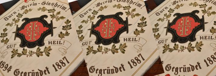 Neues vom Stadtschreiber: Weit gereistvon Hans-Benno Hauf Bereits im Jahre 1861 bemüht sich der junge Ginsheimer Lehrer Amelung um die Bildung eines Turnvereins, was im Frühjahr 1863 auch gelingt. Doch am 03.11.1867 erfolgt die Auflösung und 14 Mitglieder gehen in den 1. Gesangsverein über. Es dauert bis zum Frühjahr 1887, als 22 Bürger in der Gaststätte „Zur schönen Aussicht“ vor dem Landungsplatz am Altrhein den Turnverein Ginsheim wieder gründen, dessen Vorsitzender Wilhelm Wucher wird. Auf dem Festplatz vor der ev. Kirche weihen die Turner am 15. Juli 1894 unter Beteiligung aller Ortsvereine ihre neu erworbene Fahne. Sie wird das Erkennungszeichen des Vereins, bei Reisen zu unzähligen Turnfesten in nah und fern oder festlichen Veranstaltungen im Ort. Über all die Jahre wird sie zum wohlgehüteten Kleinod und hat später ihren Platz im Casino der Turnhalle in der Rheinstraße. Bis zum Ende des zweiten Weltkriegs, als amerikanische Truppen durch Ginsheim kommen, ein junger Soldat auf der Suche nach Waffen Gefallen an ihr findet und sie zu seinem Gepäck nimmt. Am Ende seiner Dienstzeit in Deutschland kehrt er in seine Heimat Cleveland im US-Bundesstaat Ohio zurück und übergibt – er selbst ist Turner- die Fahne dem Präsidenten des „Socialen Turnverein Cleveland Ohio“. Mister F.C. Folberth, in Siebenbürgen geboren und 1902 von München ausgewandert, schreibt 1947 an den Ginsheimer Turnervorsitzenden Heinrich Jost und lüftet damit das Geheimnis des Verbleibs der alten Turnerfahne. Zwei Jahre später macht Mr. Folberth sein Versprechen wahr. Im Oktober 1949 trifft in Ginsheim das angekündigte Paket ein. Im Café Ambach wird die Ankunft mit dem aus Amerika