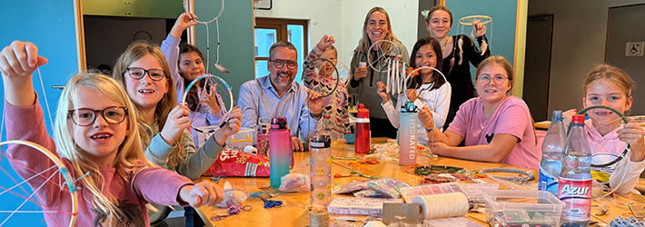 Spaß und Kreativität in den HerbstferienDie Herbstferienspiele des städtischen Kinder- und Jugendbüros sind erfolgreich zu Ende gegangen. Abwechslungsreiche Angebote und das gemeinsame Miteinander haben viele Kinderaugen zum Leuchten gebracht. Das Programm bot für jeden etwas: Gruppenspiele, eine spannende Schnitzeljagd und kleine Tanzchoreografien sorgten für Bewegung und Teamgeist. Ergänzt wurden diese Aktivitäten durch gemeinsame Ausflüge, wie einen Kinobesuch und einen Tag im Indoor-Spieleparadies Rambazamba in Mainz. Beim Basteln wurden Kürbisse bemalt, Taschen und Salzteigfiguren gestaltet oder bunte Traumfänger gebastelt. In der Küche duftete es nach selbstgemachter „Dubai-Schokolade“ und frisch gekochter Kürbissuppe. Ein aufregender Moment war der Besuch von Bürgermeister Thorsten Siehr, der gemeinsam mit den Kindern Traumfänger bastelte – ein Erlebnis, das allen in Erinnerung bleiben wird. Mit vielen schönen Eindrücken, neuen Freundschaften und jeder Menge Spaß ging die Woche viel zu schnell vorbei. Ein herzliches Dankeschön gilt dem engagierten Team des Kinder- und Jugendbüros für diese rundum gelungene Ferienwoche. Foto: Stadtverwaltung |